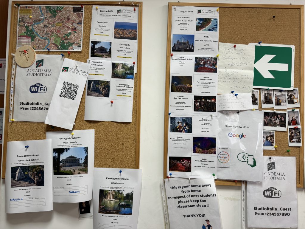 This school offers affordable activities (5 euros or less). They offer Italian cooking classes, watching Italian movies with Italian subtitles, and free seminars on the ancient history of Rome, Roman superstitions, etc. The only thing I wasn’t a fan of was that the activities were not arranged according to the days of the week, unlike many other schools in Rome.
