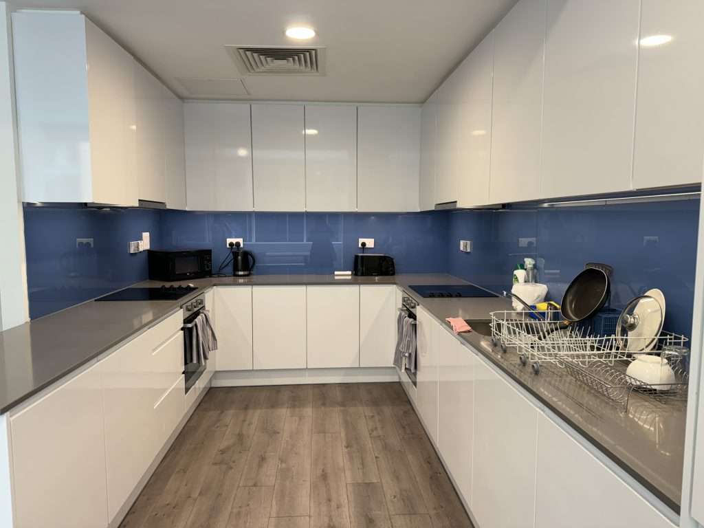 The accommodation is very high-end. The bedrooms are well furnished and modern, with hotel-standard bathrooms and modern shared kitchens. The facilities include a rooftop terrace, a club lounge, silent study pods, a gym/fitness studio, a cinema room, a games room, and a laundry room.