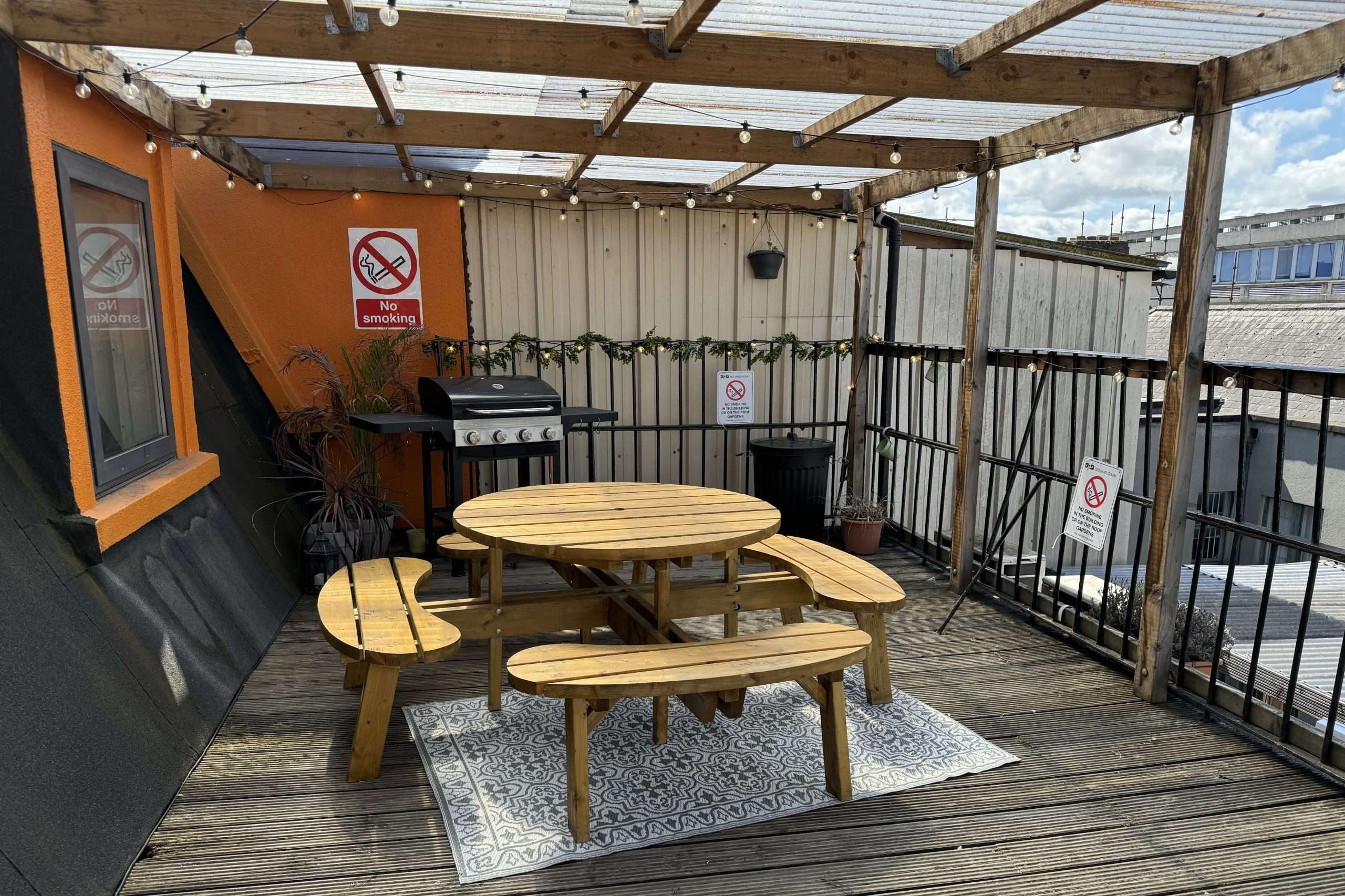 Concerning “chill-out areas”, there is a large communal cafeteria where the activity team is also based, and students can buy food from the cafeteria at an affordable price. Additionally, there is a beautiful rooftop terrace that is used for BBQs during the summer.