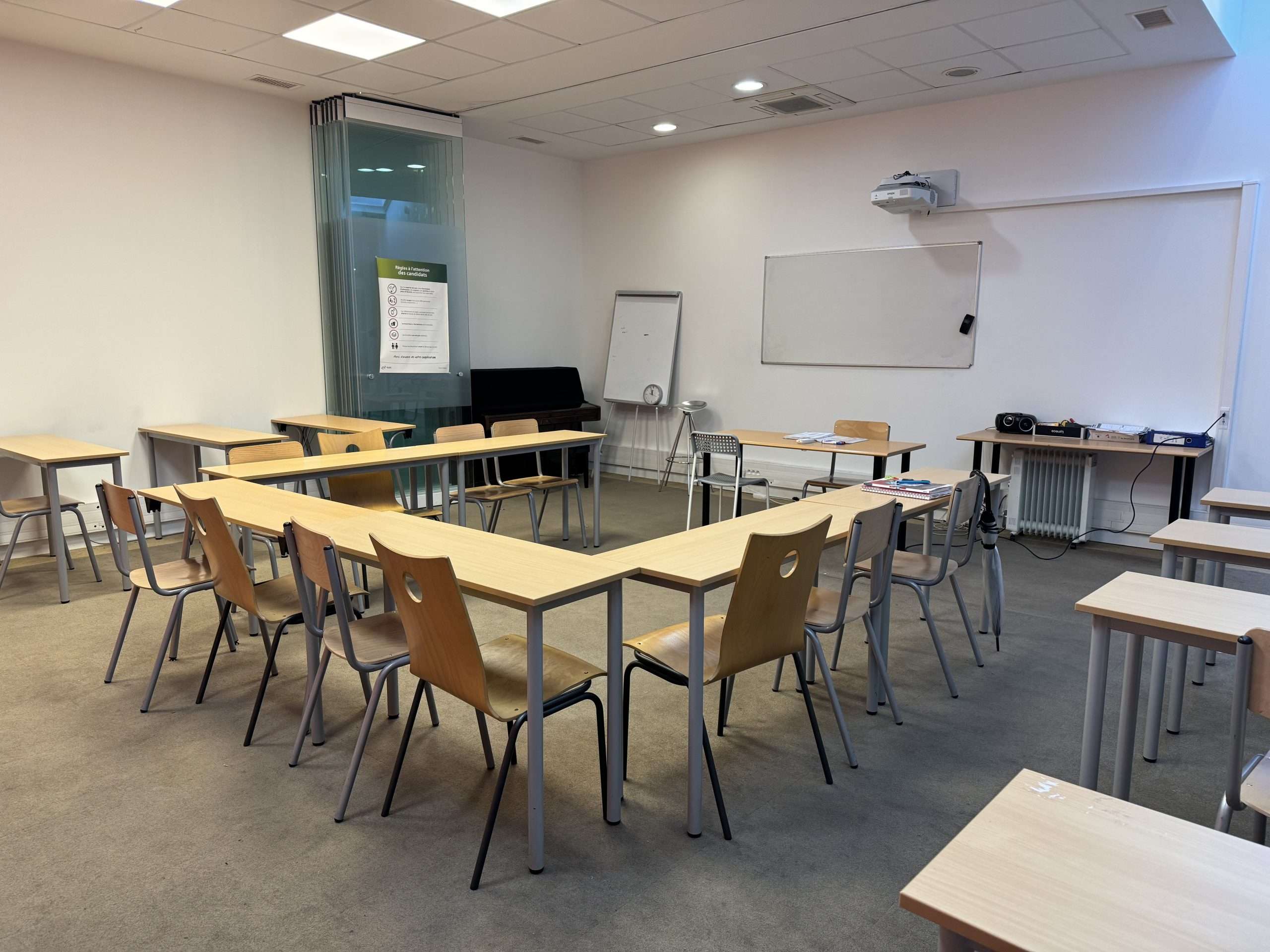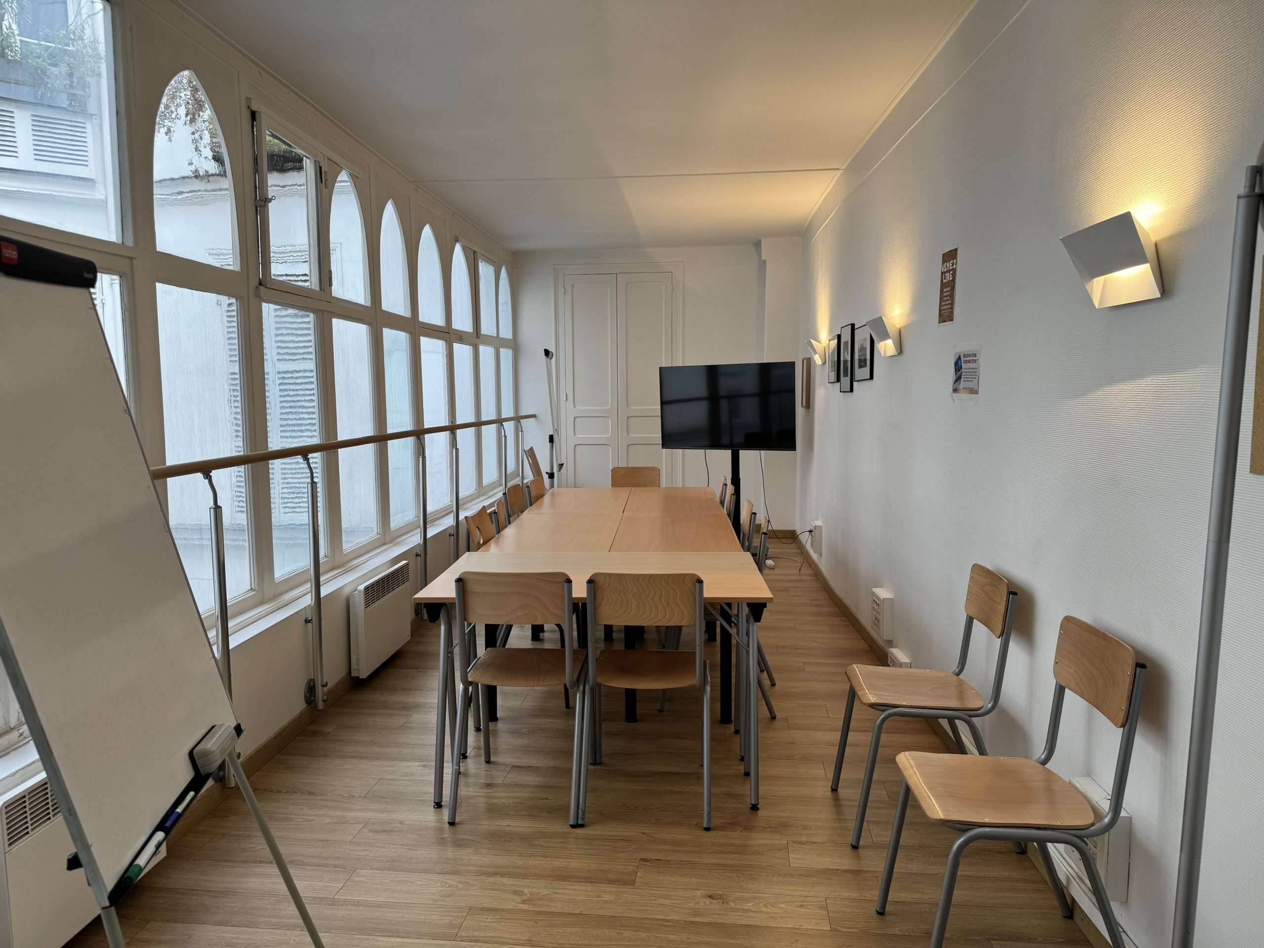 Classrooms vary in size; all are brightly lit, with windows. All the classes have large tables and comfortable chairs.